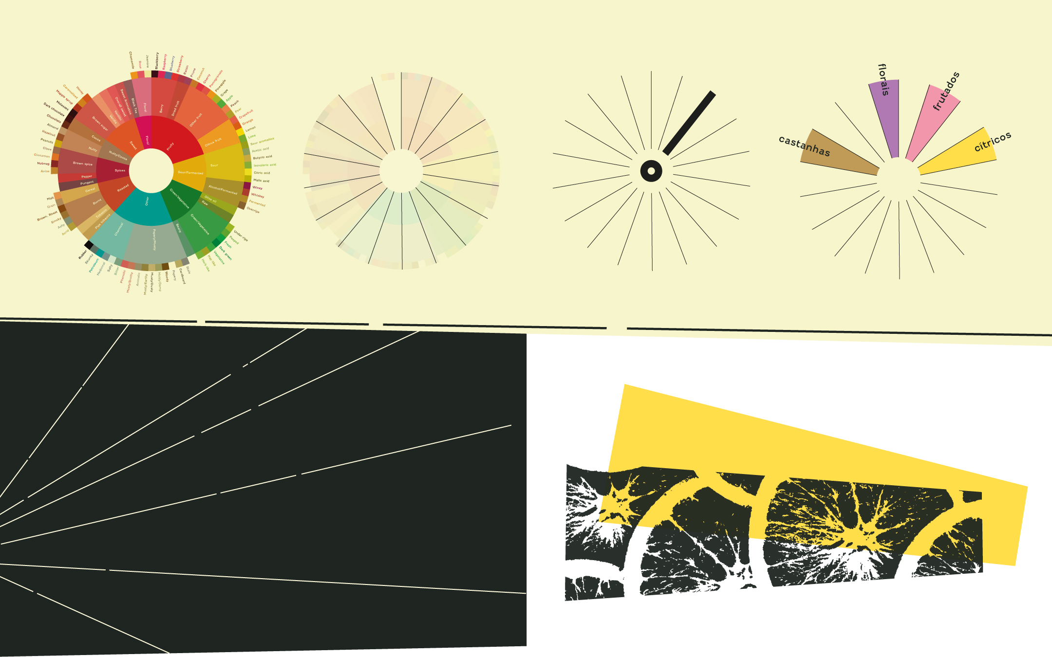 A nova identidade parte da Roda de Aromas e Sabores do café, reinterpretada em elementos gráficos radiais, selos e texturas granuladas que remetem ao café moído. O sistema de logos gira em torno da exclamação do Aha!, com tipografia personalizada e uso inteligente das cores. Pensada para funcionar até com apenas duas cores, a identidade é versátil, fácil de reproduzir e fortalece a presença do Aha! Cafés em embalagens, loja e comunicação, aproximando o público do universo dos cafés especiais.