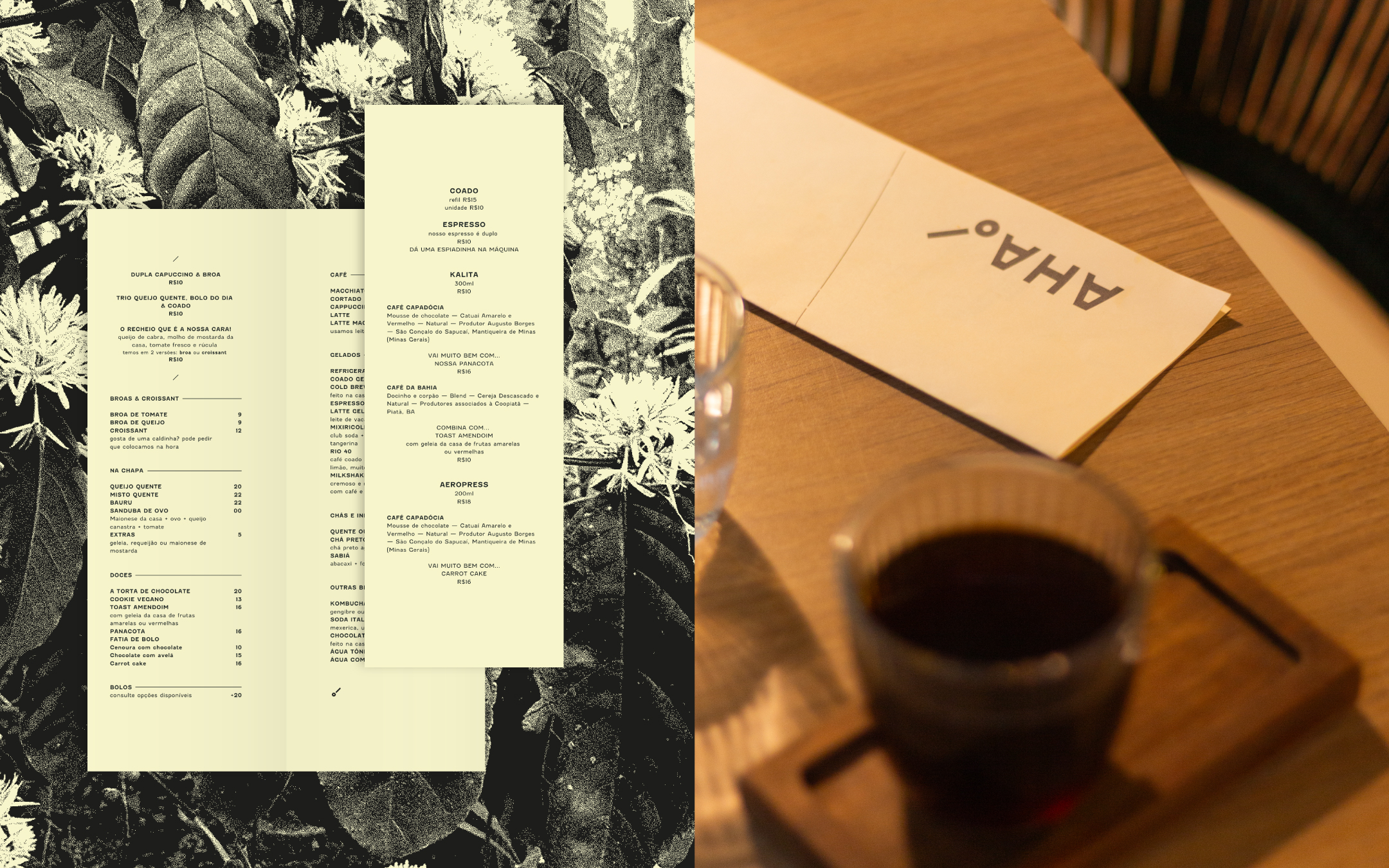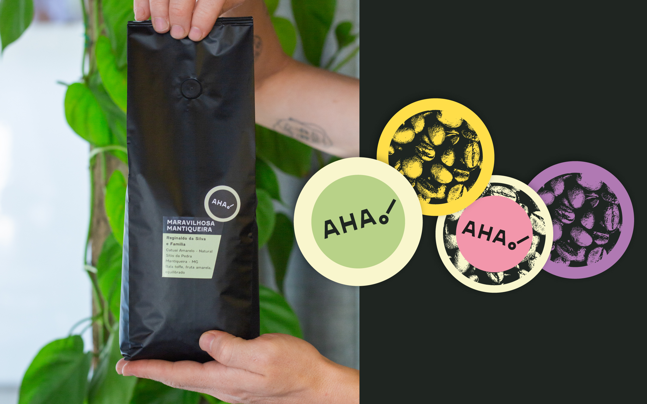 O Aha! Cafés é uma torrefação e cafeteria de Brasília (DF) que tem a ética na produção local como base do seu trabalho. A marca atua junto a pequenos produtores, o que garante uma curadoria cuidadosa dos grãos e controle total da qualidade da torra. Em um novo momento societário, o Aha! buscou um rebranding para alinhar sua comunicação aos valores da marca e preparar o sistema visual para crescer junto com o negócio.